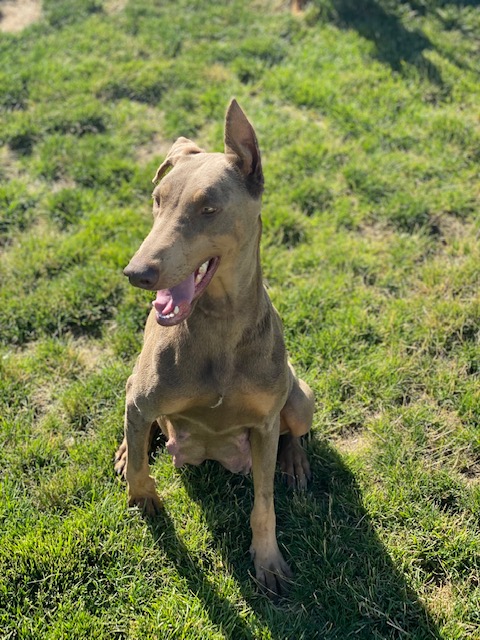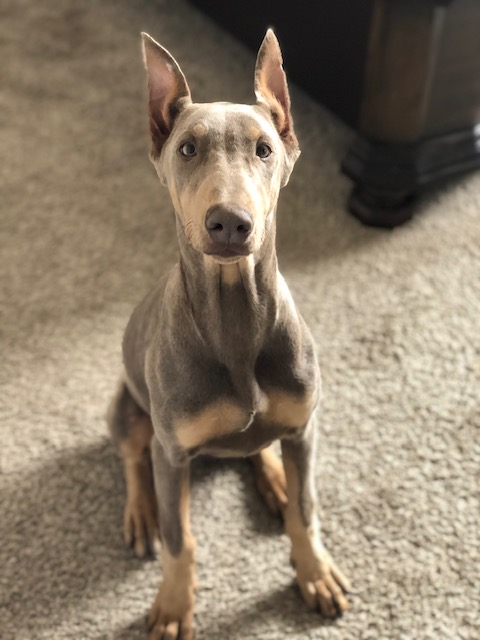 Lady Diamond Hawkins is all American Blue Purebred Doberman Pinscher, she comes from an AKC registered family flown out from Florida. She is extremely energetic and always willing to play. Blue Doberman Pinschers come in all sorts of shades, most commonly in darker shades of gray. We were drawn in by her beautiful color and immediately fell in love. Some times she looks silver given the right sunlight.
